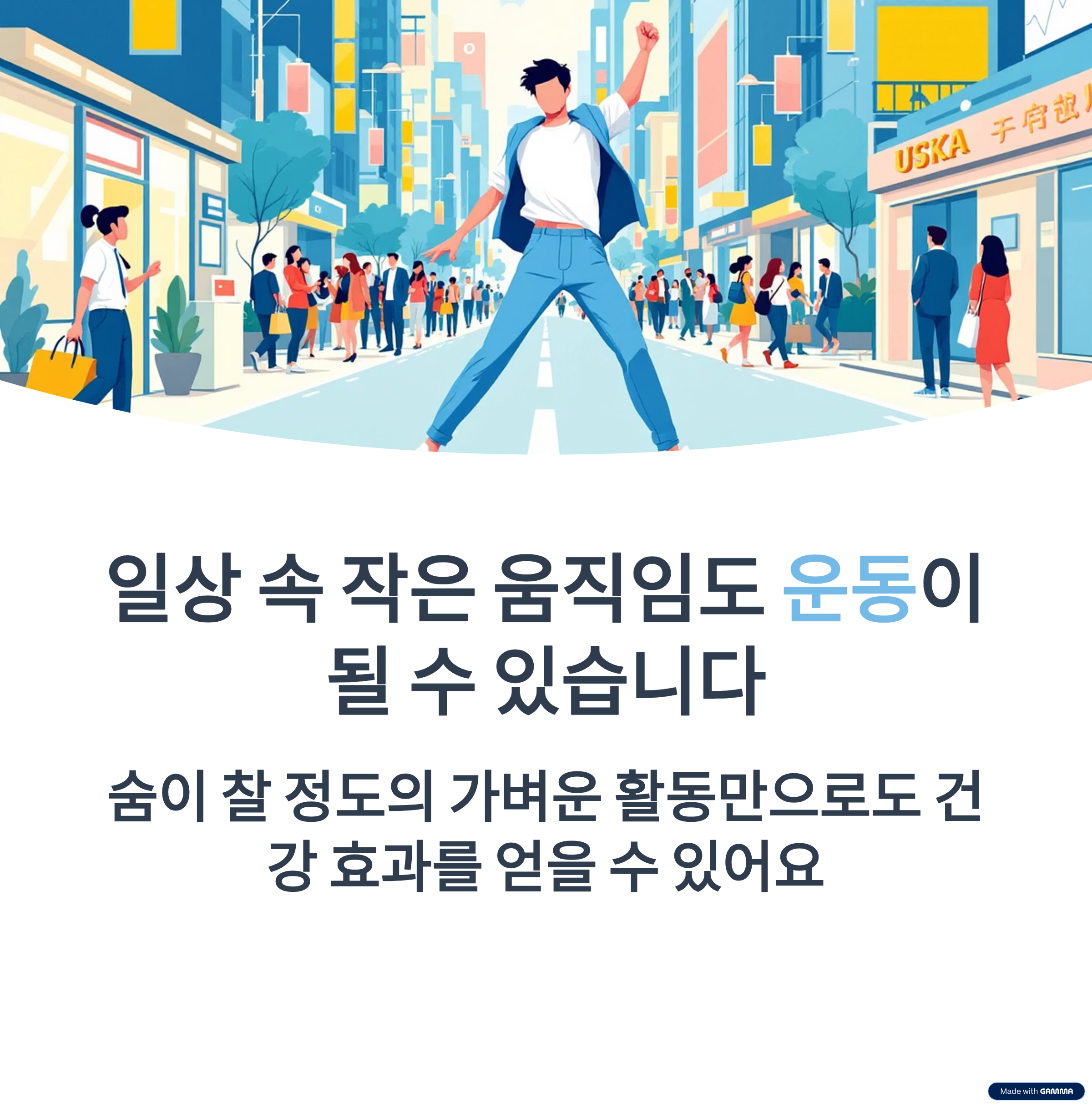 우리가 일상에서 조금만 더 활발하게 움직여도 충분하다는 뜻이죠.
