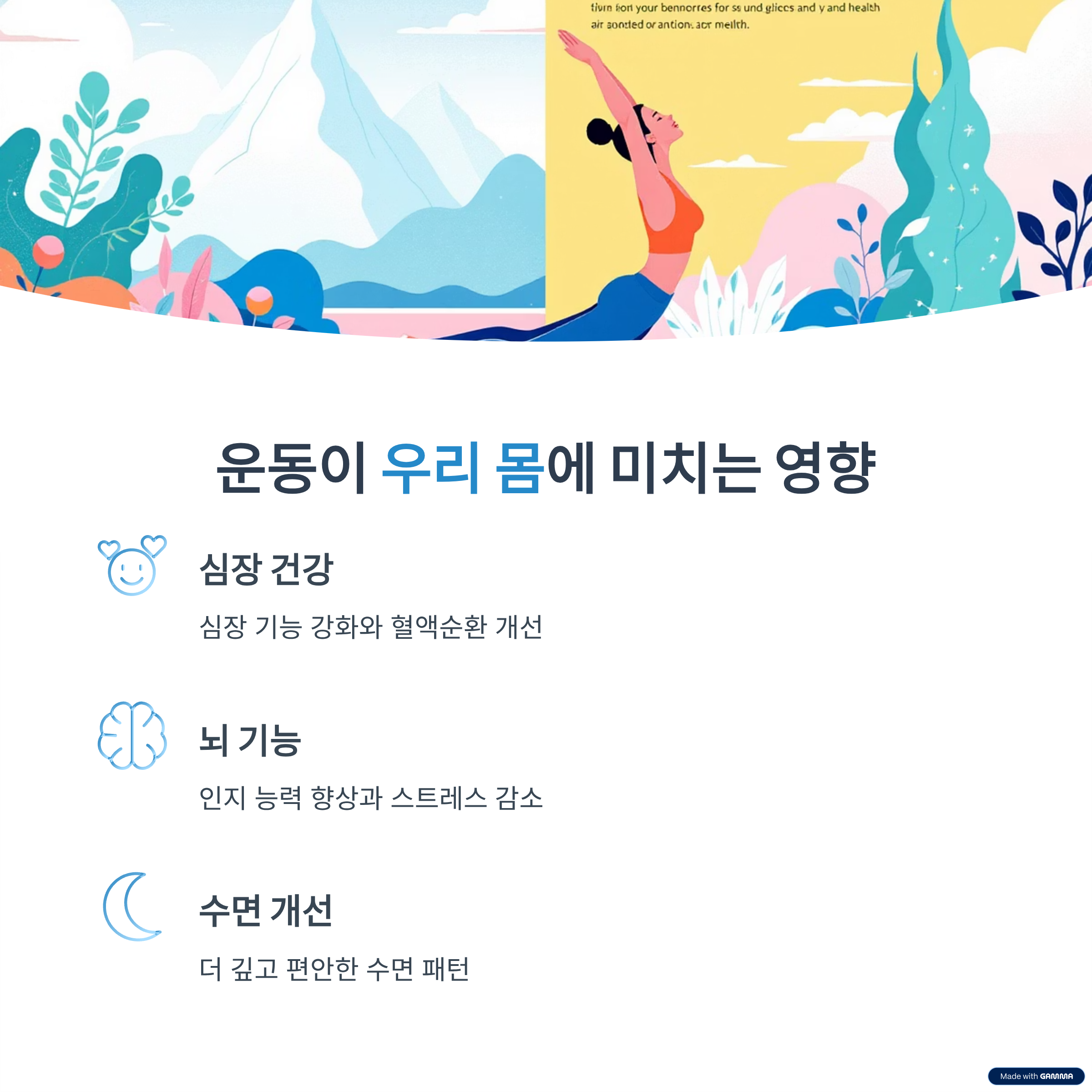 운동이 우리 몸에 얼마나 큰 변화를 가져오는지 알게 되실 거예요.
